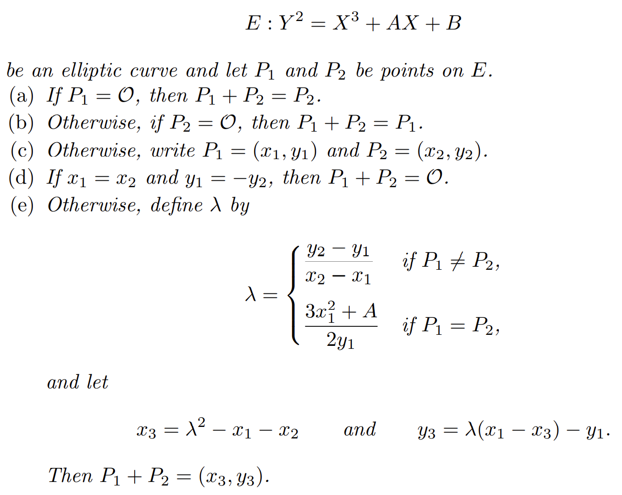 P + O = O + P = P \; for \;all\; P ∈ E\\